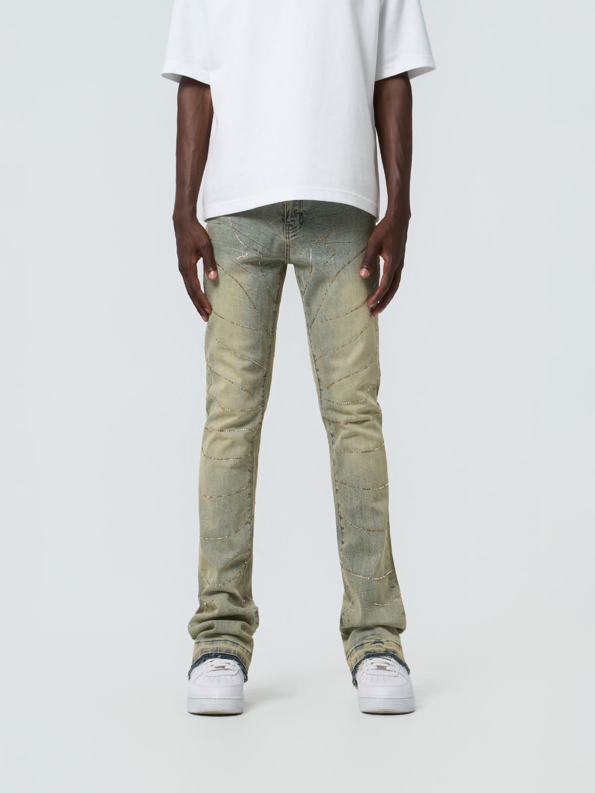 W by Waimea Men's "The Bulldog" Rhinestone Stacked Fit Jeans